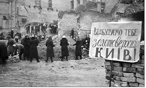 Висловіть припущення, чому під час відбудови Києва не застосовували техніку.