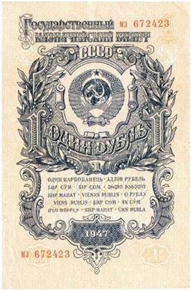Зовнішній вигляд купюри 1 «новий» карбованець 1947 р.