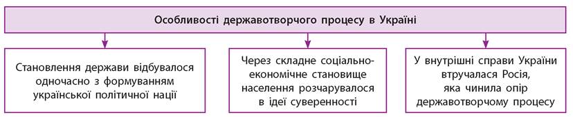 Головним завданням перших років державотворчого процесу стало формування трьох основних гілок влади — законодавчої, виконавчої та судової, створення української армії та інших силових структур. Поряд із цим необхідно було створити управлінські структури на місцях, налагодити ефективну взаємодію місцевої та центральної влади.