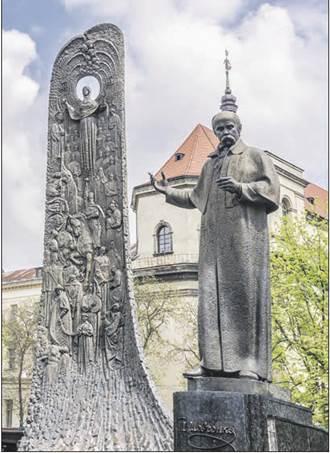 Пам’ятник Т. Шевченку у Львові, відкритий на першу річницю незалежності України. Ліворуч від фігури поета стоїть 12-метрова символічна стела «Хвиля національного відродження». 24 серпня 1992 р.