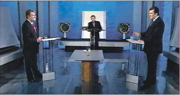 Перші теледебати претендентів на посаду Президента України В. Ющенка і В. Януковича. 2004 р.