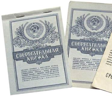 Ощадна книжка. Особисті заощадження громадян, зроблені за часів СРСР, були знецінені. До того ж усі ці фінансові ресурси в останні місяці існування СРСР перевели до Росії. Станом на 2014 р. сума заборгованості перед 12 млн вкладників становила 130 млрд грн