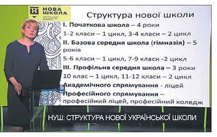 Міністерка освіти і науки України Лілія Гриневич презентує проект НУШ. 2016 р.