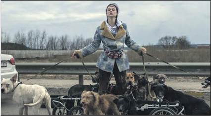 Зоозахисниця Анастасія Тиха, що вивела собак з інвалідністю з Ірпеня (Київська область). Цей знімок американського фотографа Крістофера Окіконе став відомим у світі. 9 березня 2022 р.