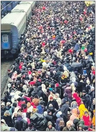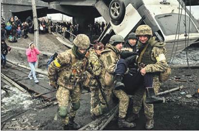 Евакуація мирного населення з Ірпеня через зруйнований міст під обстрілами російських військ. Березень 2022 р.