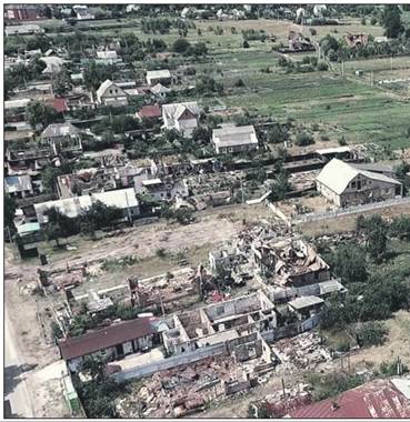 Руйнування в селі Мощун, що стало одним з ключових пунктів оборони Києва. Російські війська не змогли здолати опір українських захисників і прорватися до столиці