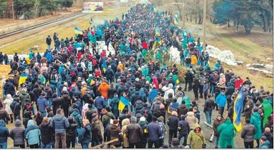 Населення Енергодару намагається не пропустити російські війська до міста. Початок березня 2022 р.
