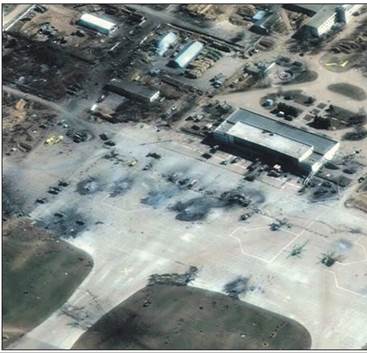 Аеродром у селі Чорнобаївка (Херсонська область). На фотографії видно місця ураження російської техніки. 2022 р.