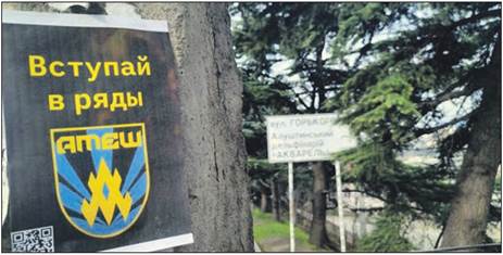 Листівки руху «Атеш» в Алушті. Напис: «Вступай до лав Атеш»