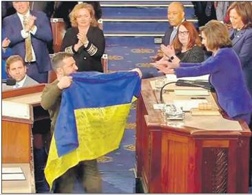 Президент України передав у Конгрес США прапор від українських захисників Бахмуту. 22 грудня 2022 р.