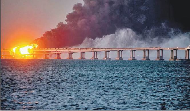 8 жовтня 2022 р. внаслідок підриву наповненої вибухівкою вантажівки та 17 липня 2023 р. після ударів морських дронів двічі зазнавав пошкодження незаконно збудований мостовий перехід між тимчасово окупованою АР Крим та РФ через Керченську протоку.