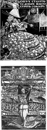 1. Проаналізуйте зміст листівки й графіку Ніла Хасевича. Що стало головним ворогом українських повстанців?