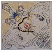 Вишивка Анни Хом’як. Табір у Норильську. 1948 рік. Вишито напис: «Боже, вислухай благання, не дай заснути у тюрмі. Волю пішли Україні, щастя і долю дай їй! Мама. На спомин діточкам»