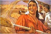 3. Який настрій передає пропагандистський плакат? Якими були реальні умови життя тих, хто поїхав освоювати цілину?