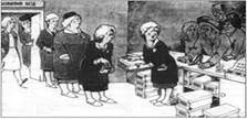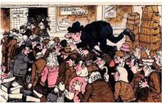 Карикатура «Вибачте, шановні, я тільки подивлюся, що дають»