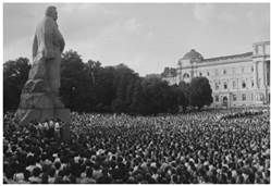 Велелюдний мітинг біля пам’ятника Іванові Франку у Львові з нагоди створення УГС. Світлина. 1988 рік