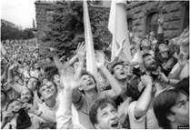 Мітинг Народного Руху України на честь підняття Національного Прапора над Київською міською радою, 24 липня 1990 року. Світлина