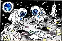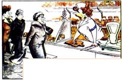«Я ж казав, що вони нас і тут випередять». Карикатура О. Кохана, 1990 рік