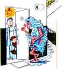 «Благаю — дозвольте у вас домитися! До нашого п’ятого вода знову не доходить!» Карикатура О. Монастирського, 1980-ті роки