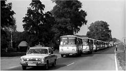 Колона автобусів для евакуації з м. Прип’ять. Світлина