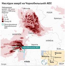 200 тисяч квадратних кілометрів — на таку територію поширилася дія радіації. Із них 52 тисячі квадратних кілометрів складали сільськогосподарські угіддя.