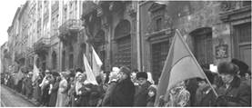 Учасники акції на Площі ринок у Львові, 1990 рік. Світлина