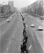 Учасники акції на трасі у Києві, 1990 рік. Світлина