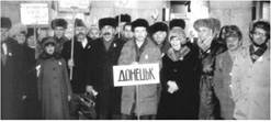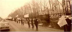 Донецька делегація, яка прибула до Києва, щоб долучитися до акції, 1990 рік. Світлина