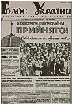 Повідомлення в газеті «Голос України» офіційному виданні Верховної Ради України, про прийняття Конституції України