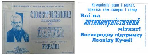 3. Розгляньте передвиборчі листівки. За кого або проти кого вони агітують голосувати? Хто переміг на президентських виборах, напередодні яких поширювалася перша листівка? Хто здобув більшість голосів на виборах, напередодні яких поширювалася друга листівка?