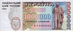 Банкнота номіналом 1 мільйон купонокарбованців, 1995 рік