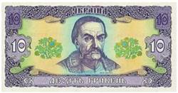 Банкнота 10 гривень. Рік випуску 1992, рік введення в обіг — 1996