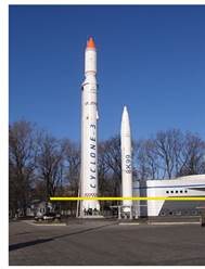 Ракета-носій «Циклон-3» і міжконтинентальна балістична ракета в парку ракет у місті Дніпро. Світлина