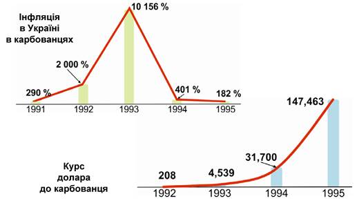 У 1992 році Верховна Рада ухвалила «Основи національної економічної політики України», які передбачали роздержавлення і приватизацію, структурну перебудову та модернізацію промисловості. Аналітики оцінювали тогочасні перспективи держави в становленні ринкової економіки як найкращі з-поміж усіх пострадянських республік. Однак утвердження ринкових відносин в економічній сфері відбувалося досить повільно. Кожний наступний уряд та президент розпочинали діяльність з обіцянок реформування посткомуністичної економіки України. Проте практичних кроків у цьому напрямі було зроблено небагато. Головних перешкод в реформуванні економіки було декілька. Насамперед брак досвіду, відсутність у керівництва держави наполегливості в проведенні ринкових реформ, його намагання зберегти елементи командно-адміністративної економіки. Доповнювала негативні тенденції фінансова нестабільність. У 1992 році уряд увів до обігу купони багаторазового використання або ж купонокарбованці, які були попередниками гривні — української національної валюти. Вони мали забезпечувати захист внутрішнього споживчого ринку. Та запровадження цих тимчасових грошей лише частково і на короткий час стримало зростання цін. У 1993 році в Україні виникла гіперінфляція — ситуація, коли ціни стрімко зростають разом зі швидким знеціненням грошової одиниці. Рівень інфляції був найвищим у світі і становив 10256%. У той час в обігові переважали купонокарбованці із шестизначними числами. Люди одномоментно ставали «мільйонерами», але при цьому мали низьку купівельну спроможність. У магазинах розплачувалися пачками грошей за традиційні продукти харчування чи товари повсякденного вжитку.