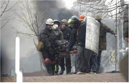 Перші жертви розстрілів на вулиці Інститутській у Києві, лютий 2014 року. Світлина