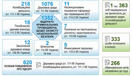 Інфографіка «Злочини проти основ національної безпеки України» станом на 16 березня 2023 року (джерело: ДБР)