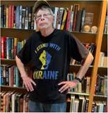 Стівен Кінг у футболці із написом «I stand with Ukraine», 28 лютого 2022 року. Світлина