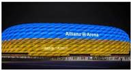Стадіон «Альянц-Арена» у Мюнхені, Німеччина, освітили синьо-жовтими кольорами на знак підтримки України, 25 лютого 2022 року. Світлина