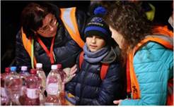 Зустріч 11-річного хлопчика, який приїхав самостійно із Запоріжжя, на словацькому кордоні, 6 березня 2022 року. Світлина
