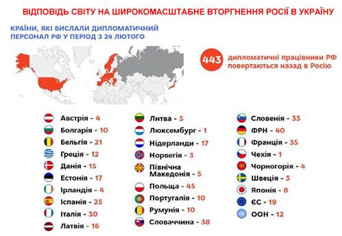 - 1. З’ясуйте, які країни вислали дипломатичний персонал Росії після початку широкомасштабного вторгнення.