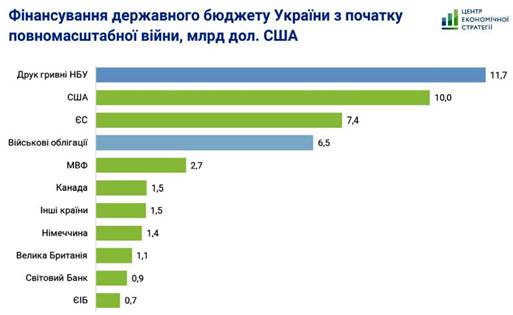 - 1. Проаналізуйте, за рахунок яких коштів формувався Державний бюджет України протягом 2022 року. Яка країна надала найбільшу фінансову підтримку Україні?