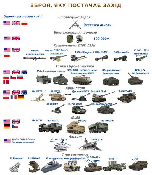 Військова техніка і зброя, надана Україні станом на березень 2023 року (джерело: BBC News Україна)