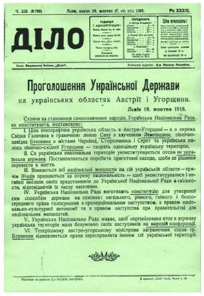 - 13 листопада 1918 рік — проголошено ЗУНР;