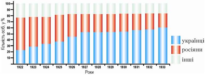 - 1. Визначте результати українізації в містах.