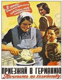 Напис на плакаті: «Приїжджай у Німеччину допомагати по господарству»