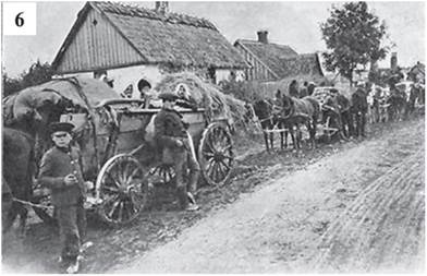 5. «Зима 1915 р. З моменту відступу російської армії з Галичини у прифронтовій смузі почали з’являтися невеликі групи місцевого населення, яке тимчасово залишало свої “гнізда” під наступальним тиском військ. Окремі поселення непомітно залишали свої оселі, просочувалися крізь військові лави і розташовувалися недалеко від фронту, харчувалися при медико-санітарних загонах, при окопних організаціях і не втрачали надії незабаром повернутися на старі місця. Явище це мало характер суто місцевий, звичайний у прифронтовій смузі, незначний за своїми масштабами і не спричиняло великої уваги з жодного боку. Однак за якийсь час, коли війська перемістилися вглиб країни, залишаючи ворогові величезну територію, явище це, згодом відоме як “біженський рух”, набуло грандіозних, небачених обсягів... Сталося неймовірне зрушення цілого народного масиву, який пережив глибоку трагедію руйнування цілком певного укладу життя - побутового, економічного й соціального. Суто місцеве явище несподівано перетворилося на явище найпершої державної ваги та привернуло увагу й участь великих державних і громадських сил...»