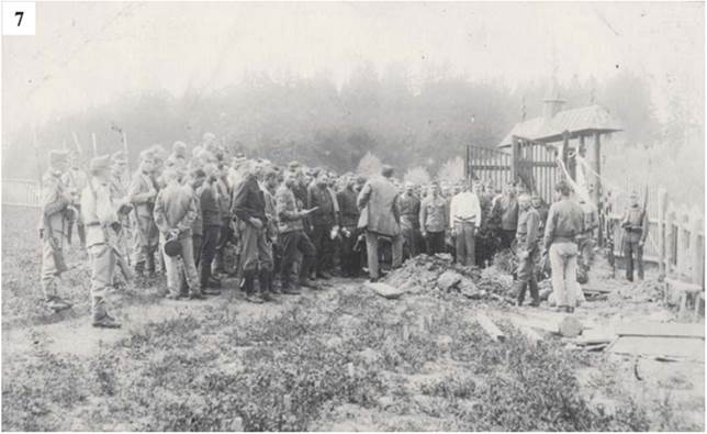 10. «Російські військовополонені, яким вдалося втекти з австрійського полону, досягши Волині, бачили повну картину розореного краю: не було, здається, жодної церкви, жодного села, де б не лежав відбиток насильства та грабежів. Жителі остаточно розорені, частина чоловічого населення забрана, частина розбіглася, ховаючись по лісах. Австрійці забрали все, що потрапило їм під руку. У жителів не залишалось ніякої живності, одягу та харчів. Селяни жили тим, що вдалося приховати, закопавши в землю. Повсюдно панував смуток, тривога, розпач... Біженці, погорільці, розорене місцеве населення змушені були жити впроголодь, випрошуючи хліб у більш спроможних жителів або у військових. Такою була соціальна картина життя прифронтової Волині».