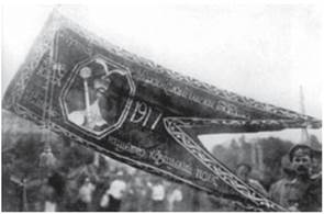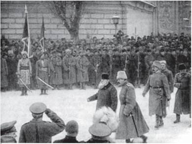 М. Грушевський приймає парад куренів Вільного козацтва. 1917 р.