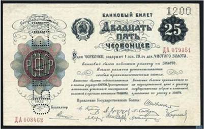 Радянський червінець найбільшого номіналу — 25. 1922 р.