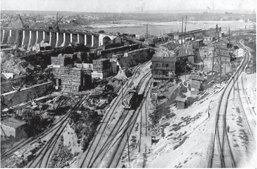 «Розмах будівництва вражав: у березні, коли будівництво тільки починалося, працювало всього 650 осіб, а коли в листопаді 1927 р. було офіційне закладення Дніпровської ГЕС - уже понад 10 тисяч. Урочистий мітинг з нагоди закладення станції відбувся 7 листопада 1927 р., у річницю Жовтневої революції. На ньому були присутні члени українського уряду. На місці майбутньої станції забетонували чавунну меморіальну дошку з текстом російською та українською мовами. Механізмів було мало, хоча будівництво Дніпровської ГЕС уважалося найбільш механізованим. Земельні роботи здебільшого виконувалися вручну за допомогою лопати, грабарки1 й тисяч коней. Народ на будівництві був різний: ув'язнені, бандити, петлюрівці, злодії всіх мастей. Ще були білі офіцери, контрабандисти, священники, спекулянти, куркулі, сектанти, учасники заколотів, аристократи.